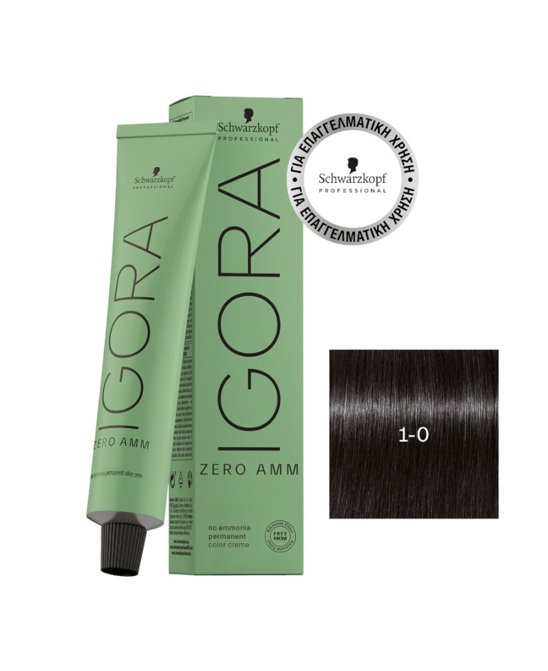 Η IGORA ZERO AMM 1-0 Μαύρο Φυσικό, είναι μια μόνιμη κρέμα βαφής, 100% χωρίς αμμωνία που μπορεί να χρησιμοποιηθεί με όλες τις τεχνικές χρώματος, χωρίς συμβιβασμούς! Η σύνθεση χωρίς αμμωνίας με την Τεχνολογία Phytolipid περιέχει βελτιστοποιημένες μίξεις πιγμέντων και ένα μίγμα φυσικών μικρομορίων, βοηθούν στην βελτίωση της χρωματικής απόδοσης για αξιόπιστα χρωματικά αποτελέσματα μεγαλύτερης διάρκειας χωρίς οσμές αμμωνίας.