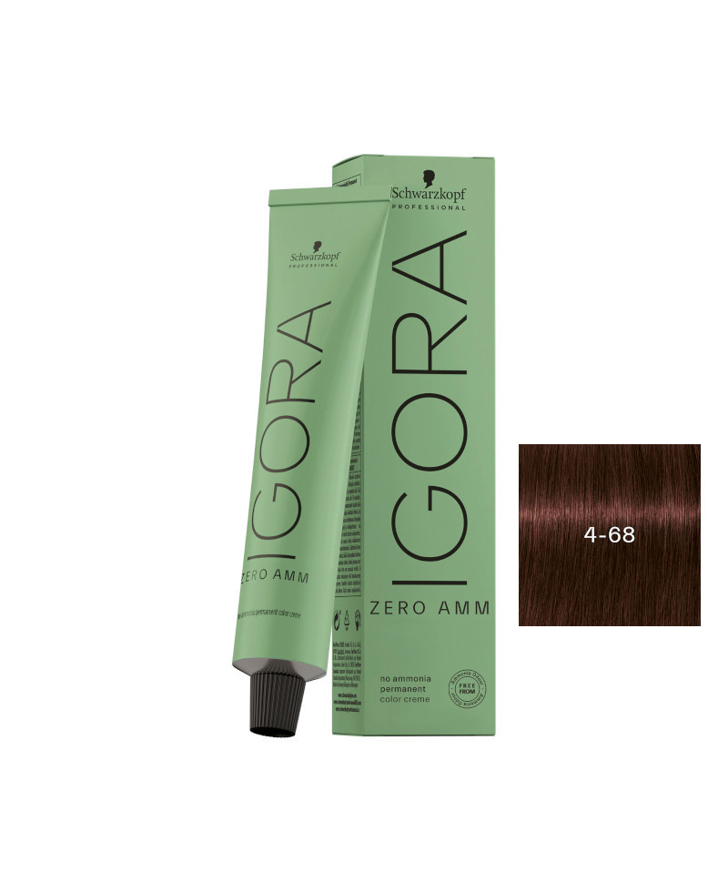 Η IGORA ZERO AMM 4-68 Καστανό Μεσαίο Μαρόν Κόκκινο, είναι μια μόνιμη κρέμα βαφής μαλλιών, 100% χωρίς αμμωνία που μπορεί να χρησιμοποιηθεί με όλες τις τεχνικές χρώματος, χωρίς συμβιβασμούς! Η σύνθεση χωρίς αμμωνίας με την Τεχνολογία Phytolipid περιέχει βελτιστοποιημένες μίξεις πιγμέντων και ένα μίγμα φυσικών μικρομορίων, βοηθούν στην βελτίωση της χρωματικής απόδοσης για αξιόπιστα χρωματικά αποτελέσματα μεγαλύτερης διάρκειας χωρίς οσμές αμμωνίας.