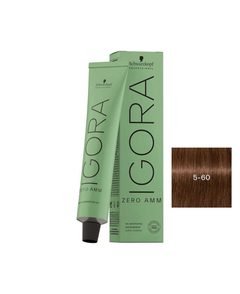 Η IGORA ZERO AMM 5-60 Καστανό Ανοιχτό Μαρόν Φυσικό , είναι μια μόνιμη κρέμα βαφής μαλλιών, 100% χωρίς αμμωνία που μπορεί να χρησιμοποιηθεί με όλες τις τεχνικές χρώματος, χωρίς συμβιβασμούς! Η σύνθεση χωρίς αμμωνίας με την Τεχνολογία Phytolipid περιέχει βελτιστοποιημένες μίξεις πιγμέντων και ένα μίγμα φυσικών μικρομορίων, βοηθούν στην βελτίωση της χρωματικής απόδοσης για αξιόπιστα χρωματικά αποτελέσματα μεγαλύτερης διάρκειας χωρίς οσμές αμμωνίας.