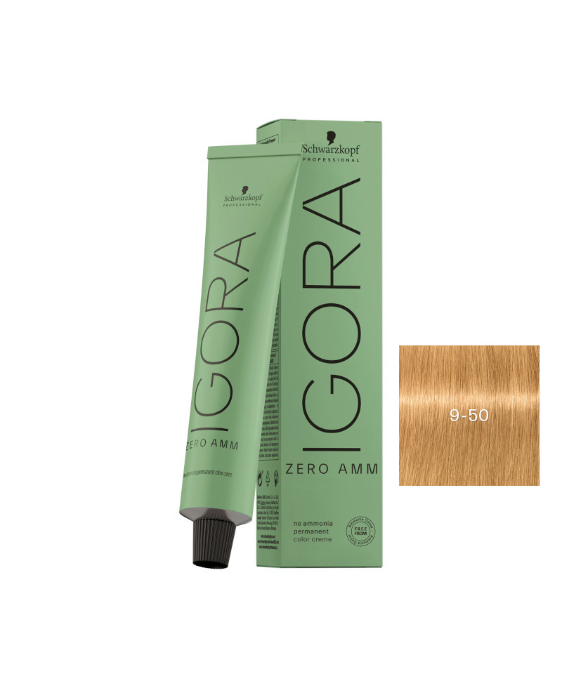 Η IGORA ZERO AMM 9-50 Ξανθό ΠΟΛΥ Ανοιχτό Χρυσό Φυσικό, είναι μια μόνιμη κρέμα βαφής μαλλιών, 100% χωρίς αμμωνία που μπορεί να χρησιμοποιηθεί με όλες τις τεχνικές χρώματος, χωρίς συμβιβασμούς! Η σύνθεση χωρίς αμμωνίας με την Τεχνολογία Phytolipid περιέχει βελτιστοποιημένες μίξεις πιγμέντων και ένα μίγμα φυσικών μικρομορίων, βοηθούν στην βελτίωση της χρωματικής απόδοσης για αξιόπιστα χρωματικά αποτελέσματα μεγαλύτερης διάρκειας χωρίς οσμές αμμωνίας.